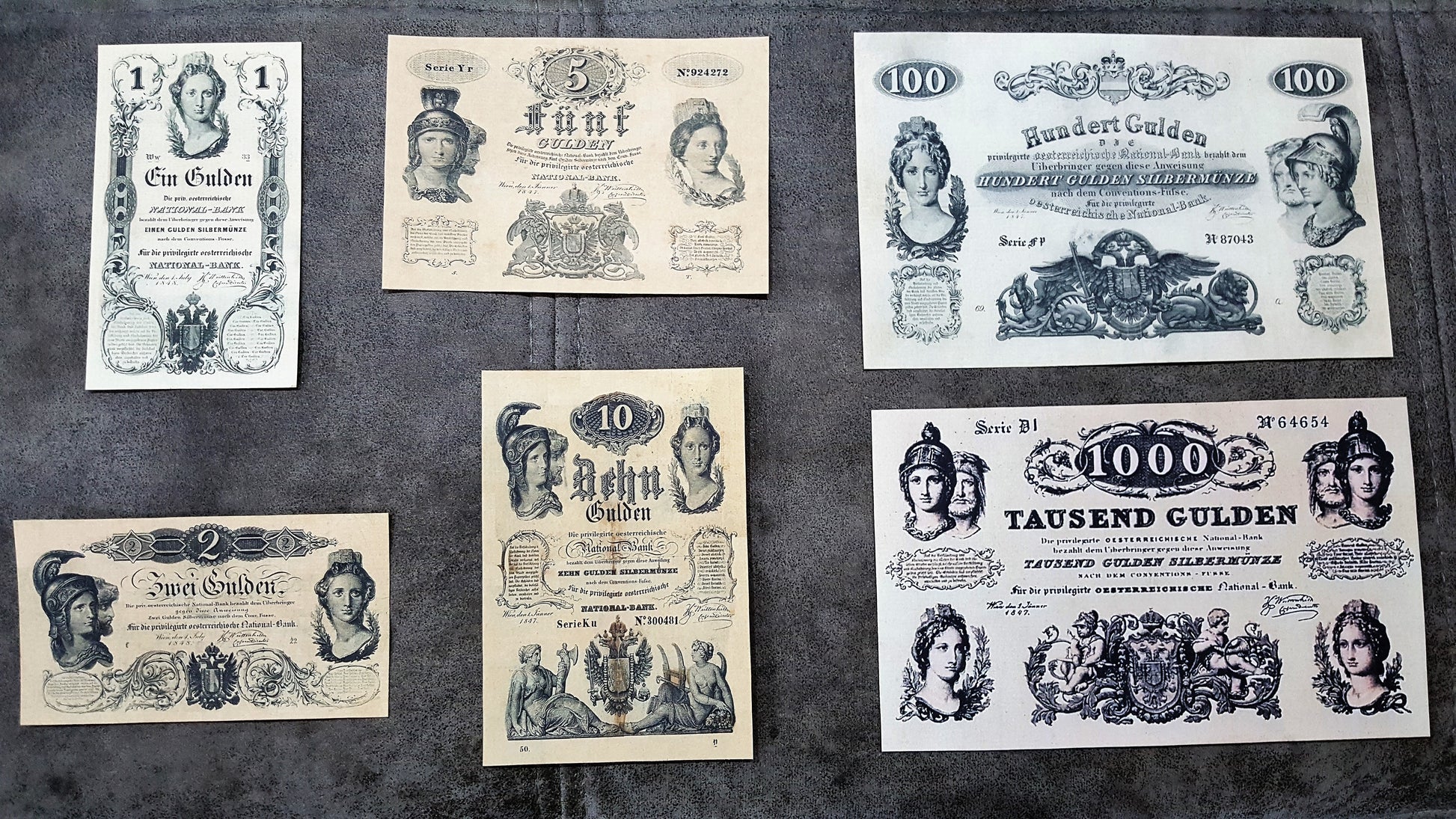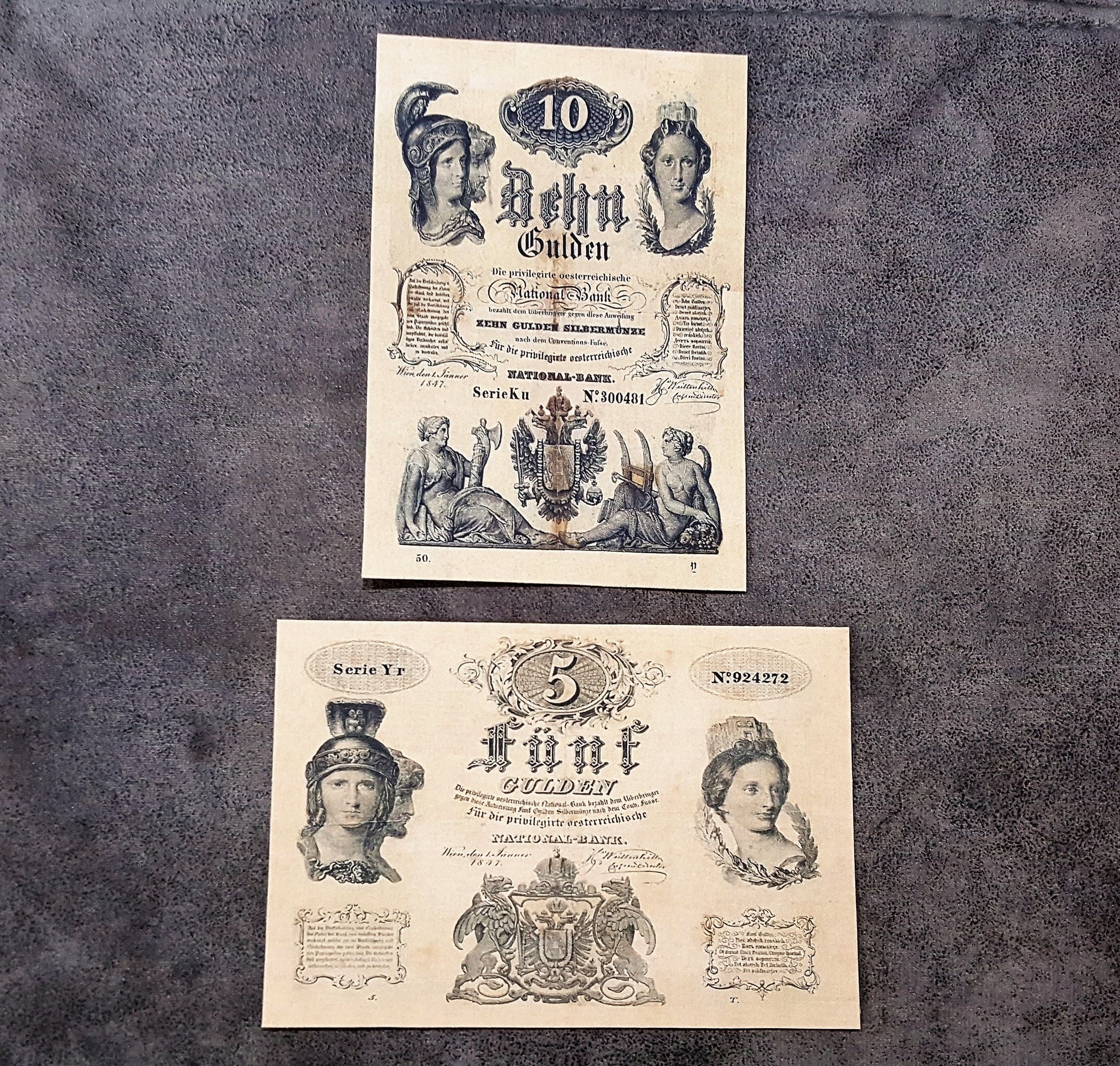 Reprint on paper with W/M Austria Banknotes 1847-1848 years. FREE SHIPPING