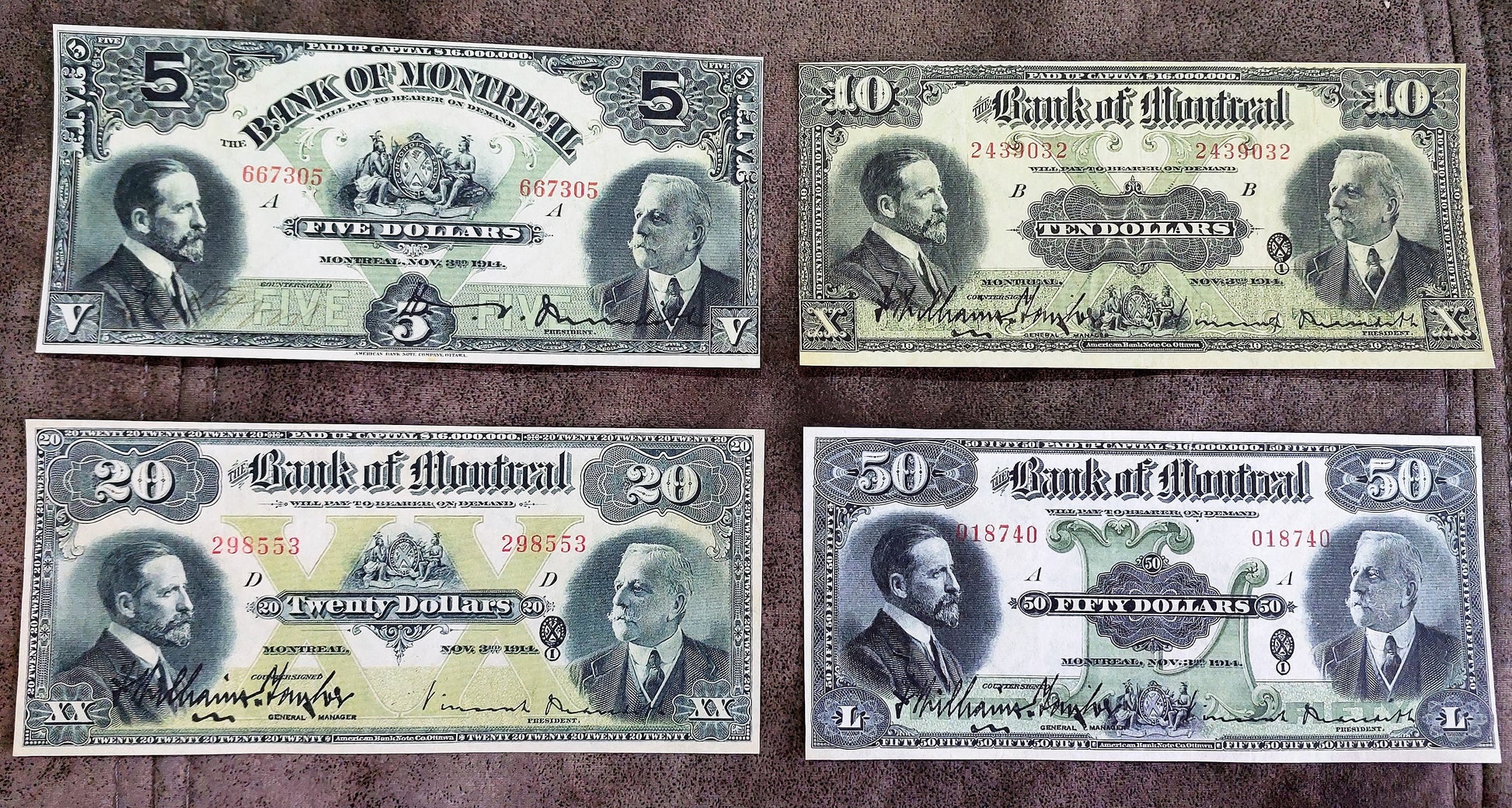 Paper money, Canada banknotes Bank of Montreal 1914-1931 y.