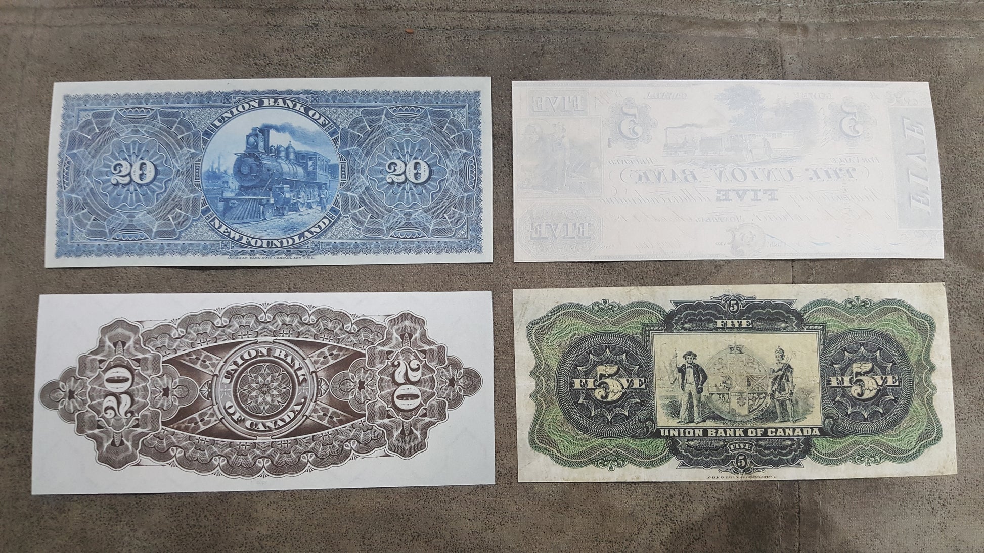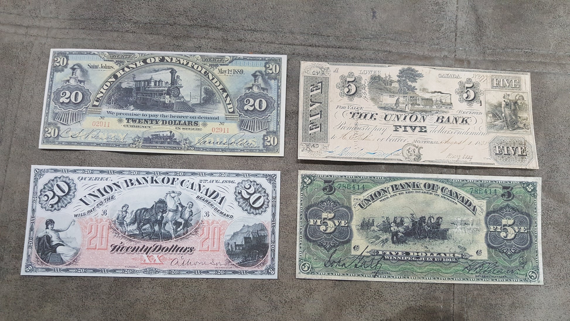 (5) 20 - Dollar 1889 Union Bank of Newfoundland.