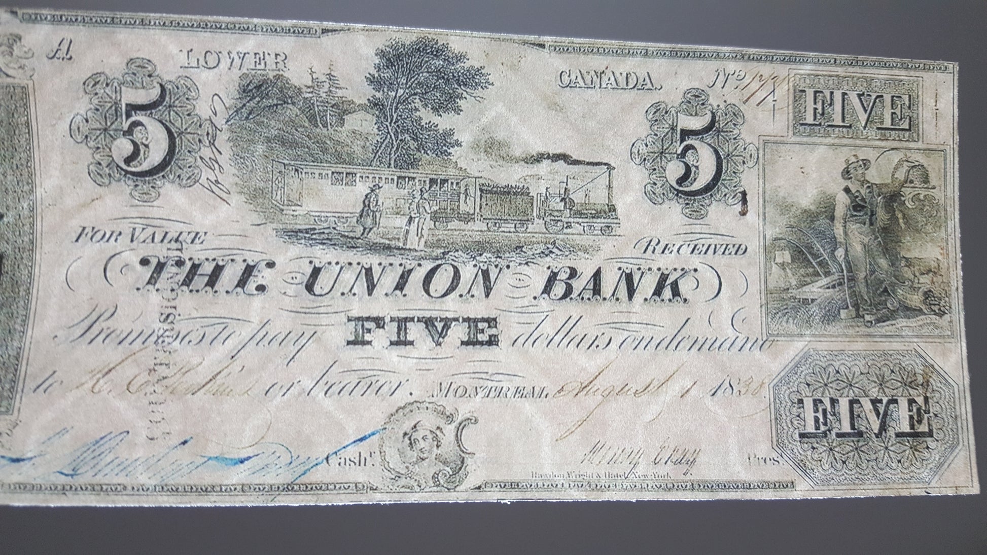 (6) 5 - Dollar 1838 Union Bank - Lower Canada.