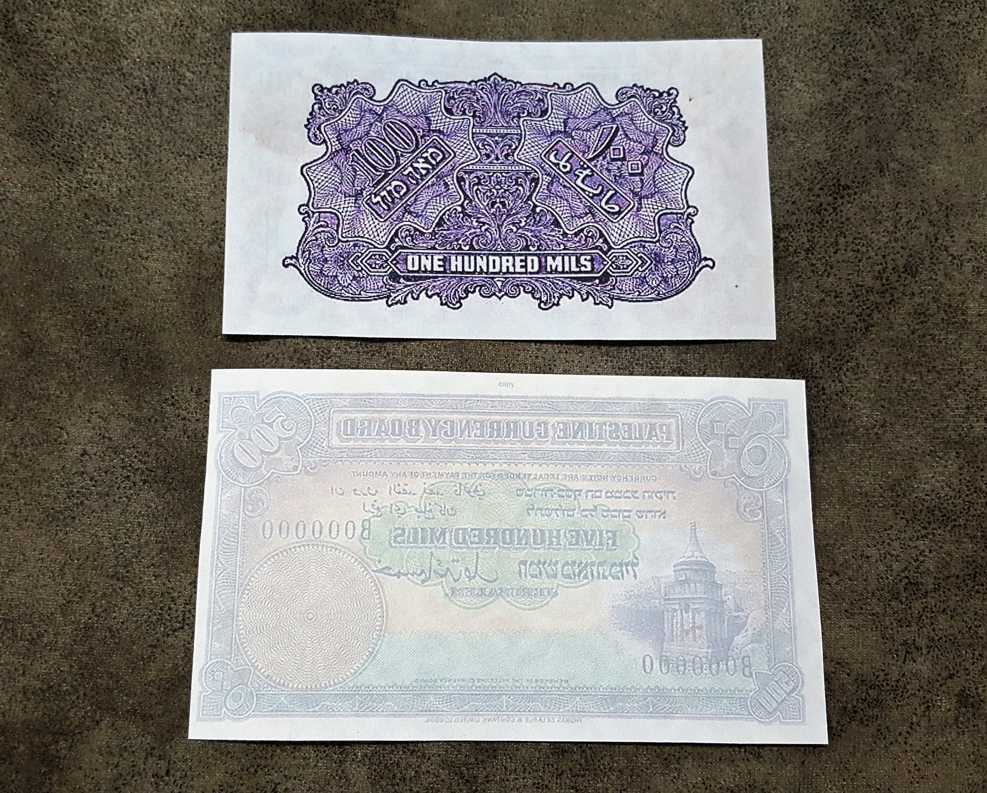 Reprint on paper with W/M Palestine-Israel Unique 100 mils - 100 Pounds RARE !!!