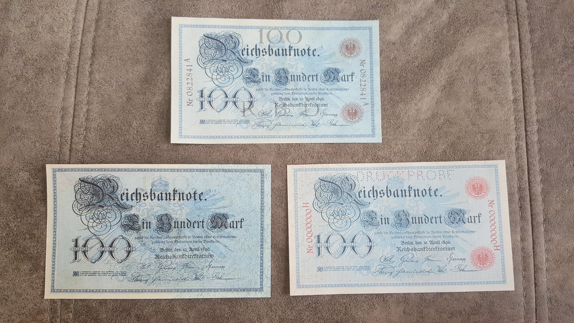 Paper money, Rarest Editions. Germany 100 Marks 1884, 1891, 1895, 1896, 1898, 1905 y. specimen