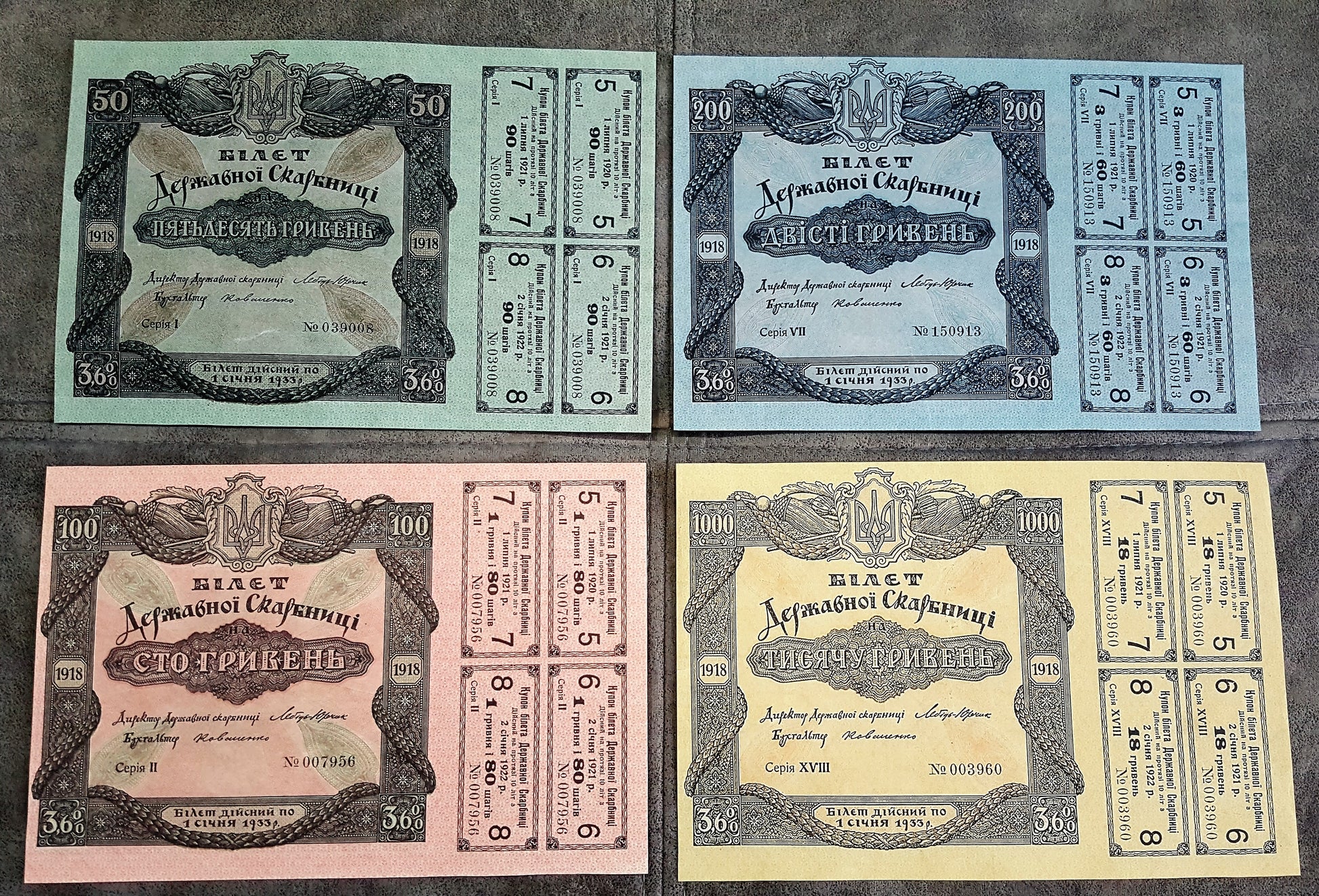 Reprint on paper with W/M Ticket of the State Treasury 1918 Ukraine FREE SHIPPIN